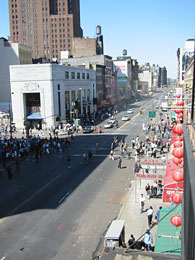 Throughout the afternoon groups of people, some crying, some covered in dust, walked east on Canal Street to the Manhattan Bridge.